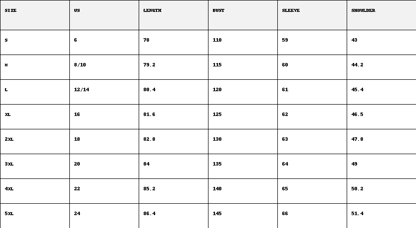 Size Chart (cm)