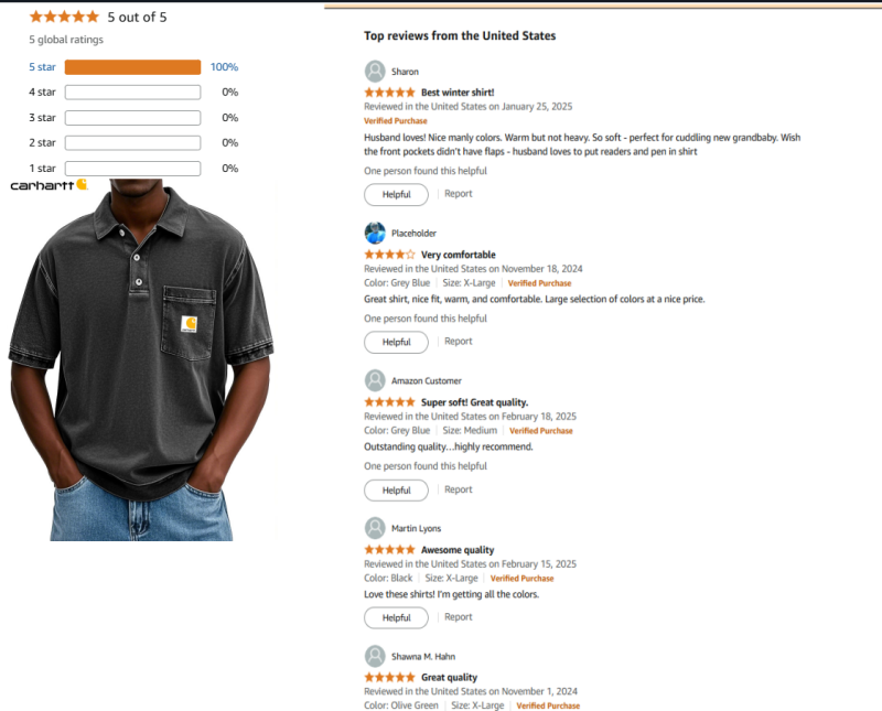 I received the clothes today, and they're exactly as I ordered online. My wife has already washed them for me.